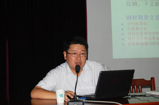 圖為:馬鋼集團(tuán)公司財(cái)務(wù)部隋偉作“有關(guān)鋼材期貨知識(shí)”專題講座