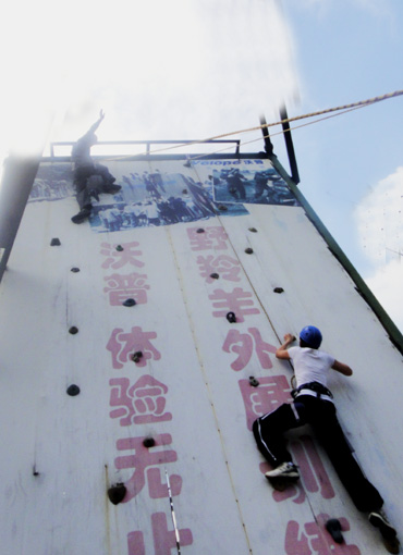 圖為:拓展訓練活動現(xiàn)場