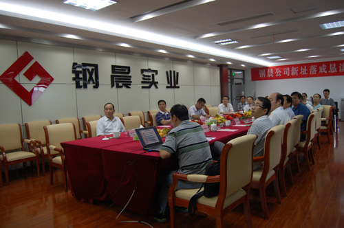 鋼晨公司新址落成懇談會8月24日上午,在鋼晨公司物流園新址3層會議室舉行。懇談會由汪立新總經理主持,馬鋼股份公司副總經理任天寶、市工行、長鋼公司、馬鋼市場部、銷售公司、國貿公司、馬建公司負責人以及金蝶公司、有關兄弟單位代表、鋼晨公司領導等30余人參加了會議。與會貴賓對鋼晨物流園一起竣工并投入運營以及鋼晨公司喜遷新址表示了祝賀,并期望鋼晨公司進一步改善服務意識和質量,做本地鋼材倉儲物流銷售的領頭羊,為馬鋼材銷售做出更大貢獻。