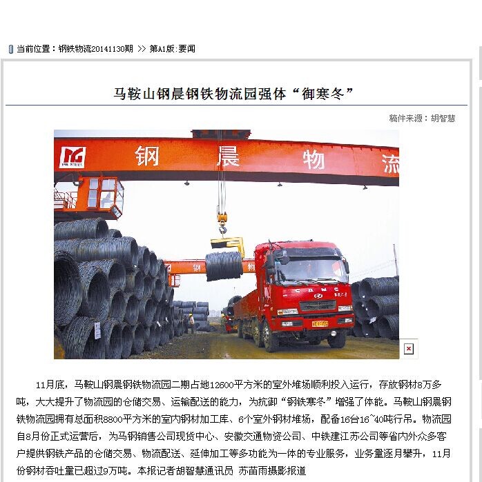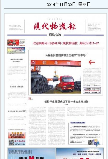《現(xiàn)代物流報(bào)》20141130期,頭版頭條對我公司鋼鐵物流園進(jìn)行了專題報(bào)道。