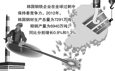 韓國(guó)鋼鐵企業(yè)2012年在全球過(guò)剩中依然保持著競(jìng)爭(zhēng)力。據(jù)韓國(guó)鋼鐵協(xié)會(huì)發(fā)布的數(shù)據(jù),韓國(guó)去年鋼材生產(chǎn)總量為7291萬(wàn)噸,粗鋼產(chǎn)量為6940萬(wàn)噸,雖然同比僅分別增長(zhǎng)0.9%和1.3%,但在全球市場(chǎng)需求下降,鋼鐵產(chǎn)能面臨嚴(yán)重過(guò)剩的情況下,有增長(zhǎng)實(shí)屬不易。特別是韓國(guó)鋼鐵業(yè)的代表——浦項(xiàng)制鐵公司被稱(chēng)為世界最具競(jìng)爭(zhēng)力鋼鐵公司,2012年銷(xiāo)售額創(chuàng)下35.7萬(wàn)億韓元的歷史紀(jì)錄,其營(yíng)業(yè)利潤(rùn)、市值以及信用級(jí)別都是最好的。國(guó)際三大信用評(píng)級(jí)機(jī)構(gòu)對(duì)浦項(xiàng)制鐵的信用評(píng)級(jí)也為全球鋼企最高。