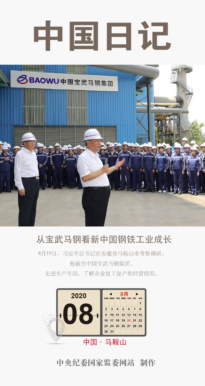 8月19日,習近平總書記在安徽省馬鞍山市考察調研。他前往中國寶武馬鋼集團,走進生產(chǎn)車間,了解企業(yè)復工復產(chǎn)和經(jīng)營情況。